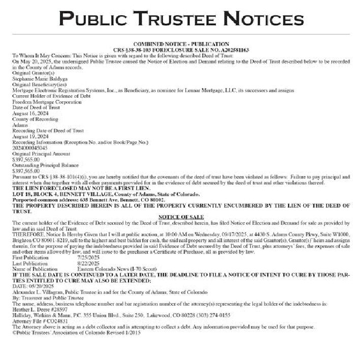 All legal notices are posted at http://www.publicnoticecolorado.com/.